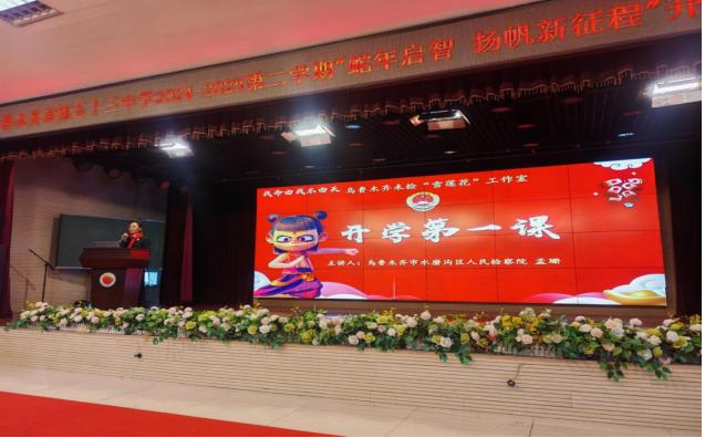 乌鲁木齐市第53中学的开学典礼上,水磨沟区人民检察院检察官孟珊以《增强自我保护意识 用法律武器维护合法权益》为主题开讲,与学生深入交流,畅聊法律与理想。课后检察官与学生一起走进校园活动室,开展手工制作活动,剪窗花、扎灯笼,共同感受中国传统手工艺的魅力,进一步激发学生们的爱国之情和学习热情。